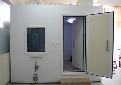 2、箱體的內外殼采用2-3mm的冷扎鋼板,經過沖壓、焊接、酸洗、噴涂制作而成的,內部采用3-6層的阻尼、隔聲、吸音材料制做而成的復合隔聲墻板。3、根據客戶的使用要求,我們把墻體厚度設計,為150mm-500mm,門設計為單道和雙道隔聲吸音門。