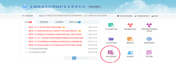 2、進入首頁,點擊單位信息維護-年度報告。