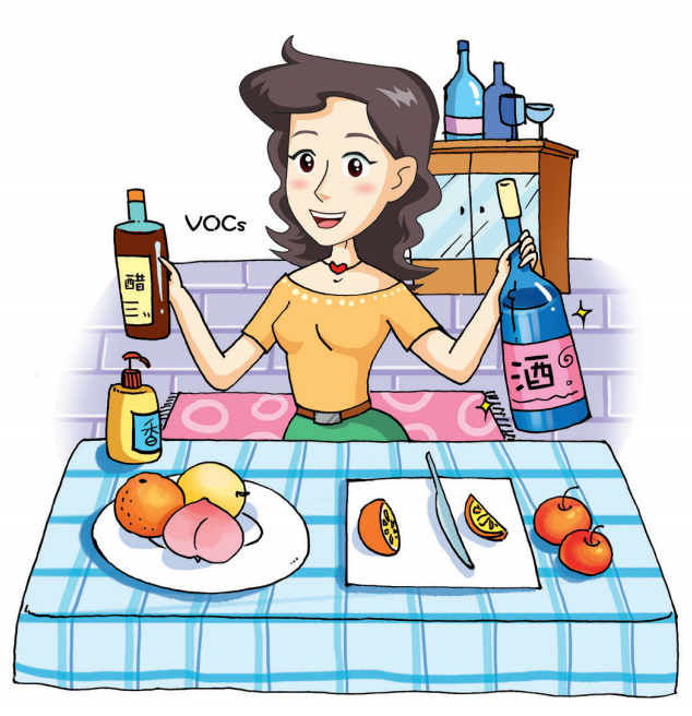 日常食用的食醋中包含醋酸(學(xué)名乙酸),可揮發(fā)進(jìn)入空氣,屬于含氧的VOCs(簡(jiǎn)稱OVOCs)。酒類飲品都含有酒精(學(xué)名乙醇),屬于揮發(fā)性較強(qiáng)的醇類,當(dāng)然也屬于VOCs,是一種OVOCs。香水中含有各種各樣的植物提煉或化學(xué)合成的芳香性化合物、精油類物質(zhì)等,其中有許多屬于VOCs,例如芳香醛、芳香酯等。此外香水中的助溶劑通常是乙醇等VOCs。一些水果(例如檸檬、橙子等)和日用清洗劑中含有苧烯,也是具有香味的VOCs。家庭裝修和家具等釋放的室內(nèi)空氣污染物,例如甲醛、苯、甲苯等都屬于VOCs。
